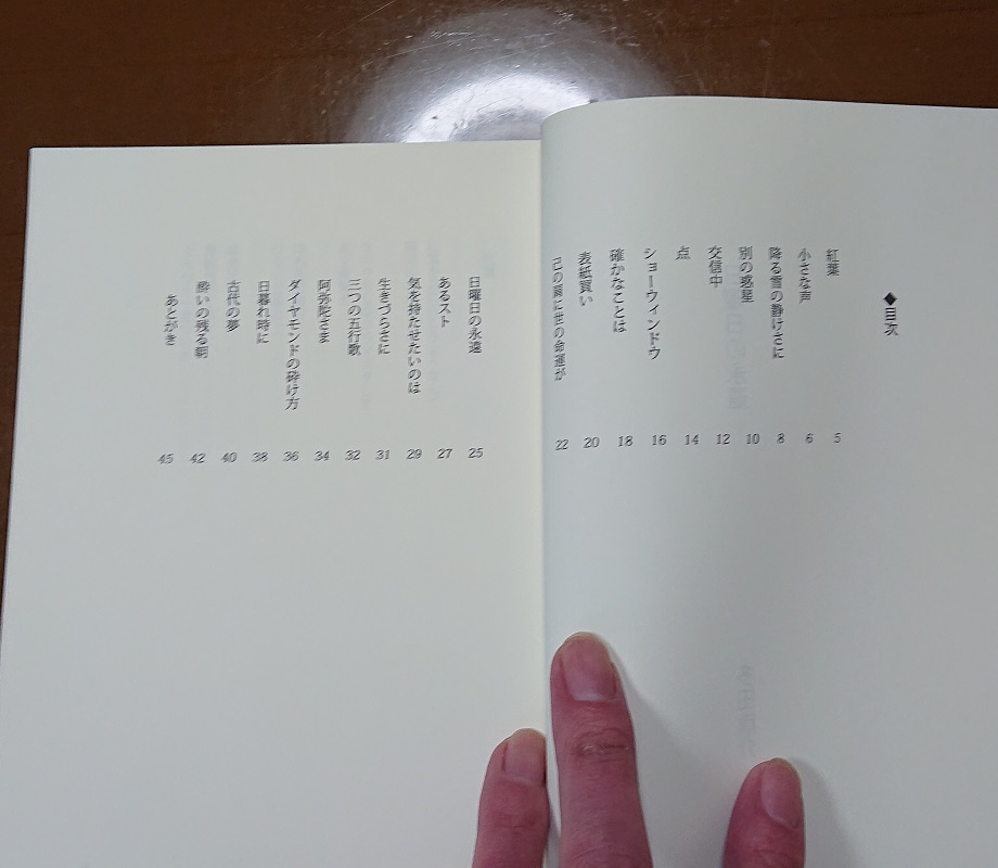 目次。ほぼ既発表作品15編とあとがき。24ページ。